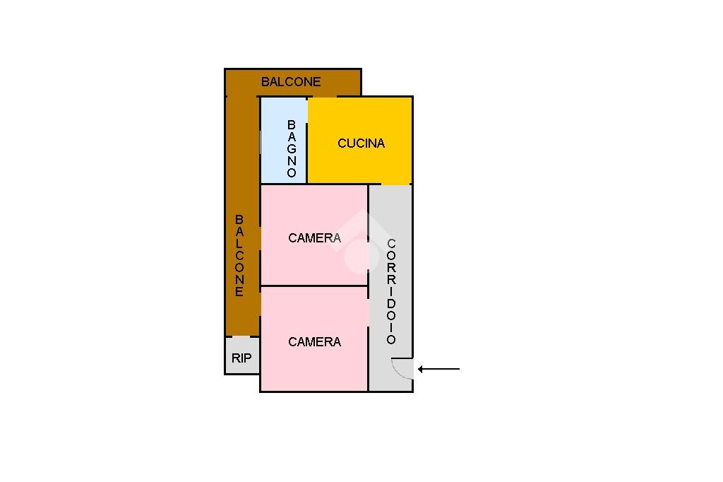 Il cespite è composto nel seguente modo: ingresso in corridio, due camere da letto, cucina abitabile e servizio.
