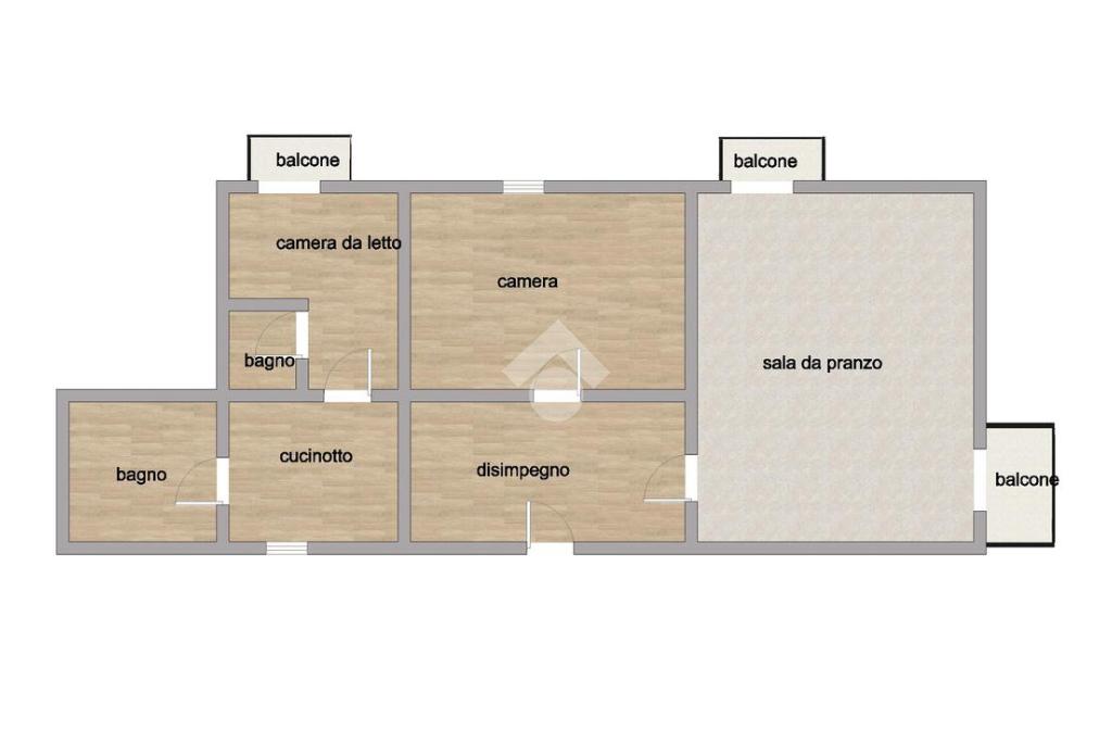 Il cespite è diviso nel seguente modo: ingresso in disimpegno, sala da pranzo, camera da letto , cameretta, doppi servizi e cucinotto.